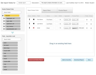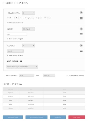 School staff need to access to and generate reports based on gathered information and specific circumstances. Using the scaffold reports, any staff or administrator have a simple and intuitive method to make domain specific reports. Advanced users have the option to generate any type of report using all available data points by using the report builder.