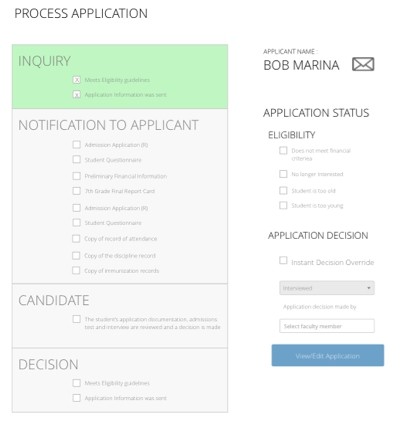 Every school year welcomes new students, but there are many steps from making an initial inquiry to deciding if a student is admitted. These designs allow parents to fill out incoming student applications, and help the admissions staff process those applications, gather relevant background information, and make decisions as to the status of the applicant. Using these products together has allowed small admissions teams to handle and organize new school prospects with greater efficiency.