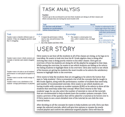 Good products are always well thought out, and those thoughts that aren't laid out and organized don't matter. Stories are not only told, but written to depict the desires, goals, and steps that are attributed to the people who will use what is being built. From protocols for research interviews and observations, to user stories for laying out product expectations, to task analysis for grasping the steps involved in people fulfilling their mission.