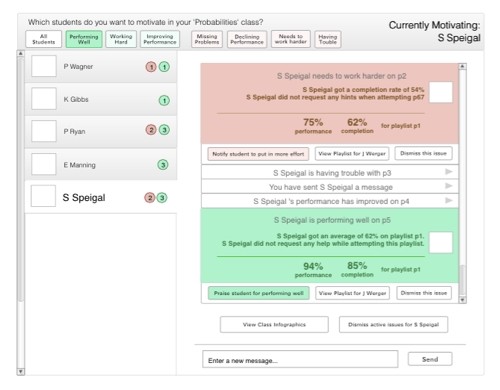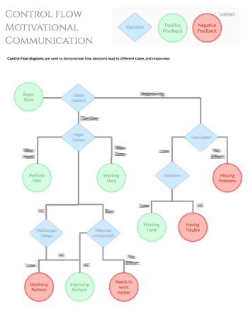 Translating carefully crafted research protocols into control flow models to demonstrate the interactions behind the people, and product decisions. One product motivates students, by giving teachers options to communicate based on their performance trends, and existing teacher practices.